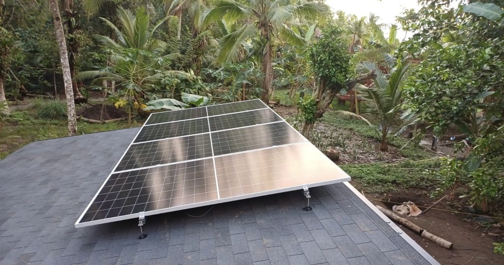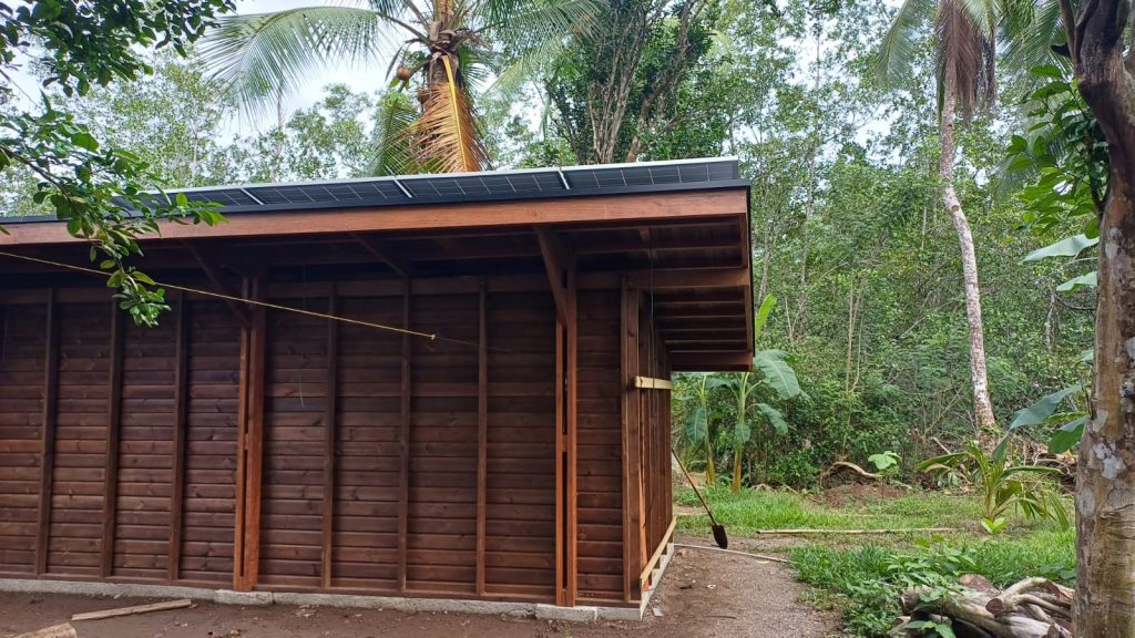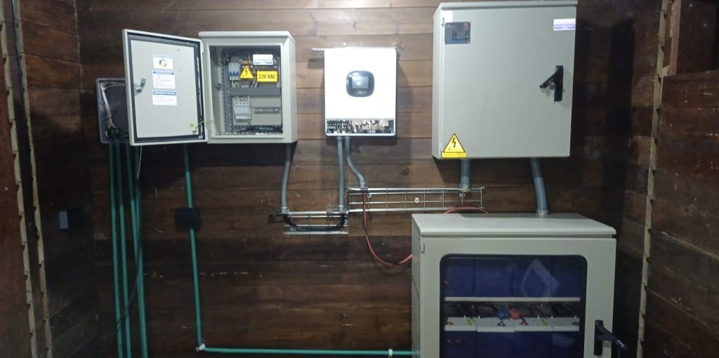 Sistema solar 5kWp Energia producida: 450 Kwh/mes. Ahorro en factura: Zona sin acceso a energía eléctrica. Tipo: Proyecto Off-Grid con una autonomía de un dia y medio. Ahorro ambiental: 4.3 Toneladas de CO2 por año.