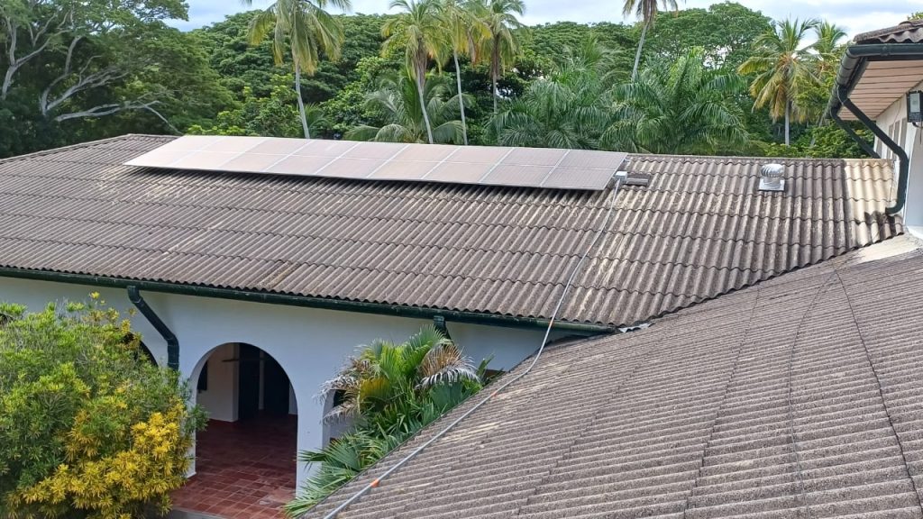 Sistema solar 6 kWp Energia producida: 590 Kwh/mes Ahorro en factura: 100% del consumo mensual Tipo: On-Grid Ahorro ambiental: 5.2 Toneladas de CO2 por año
